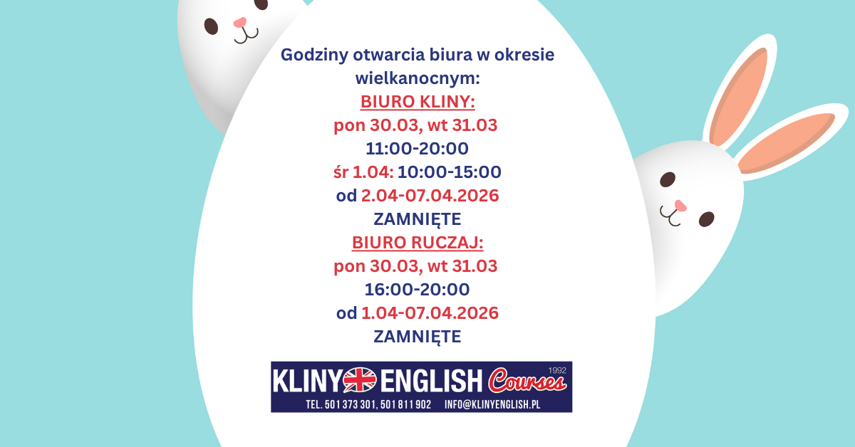 Zapraszamy uczniów klas 8, którzy uczęszczają na zajęcia General English w Kliny English Courses, na bezpłatne warsztaty przygotowujące do egzaminu…